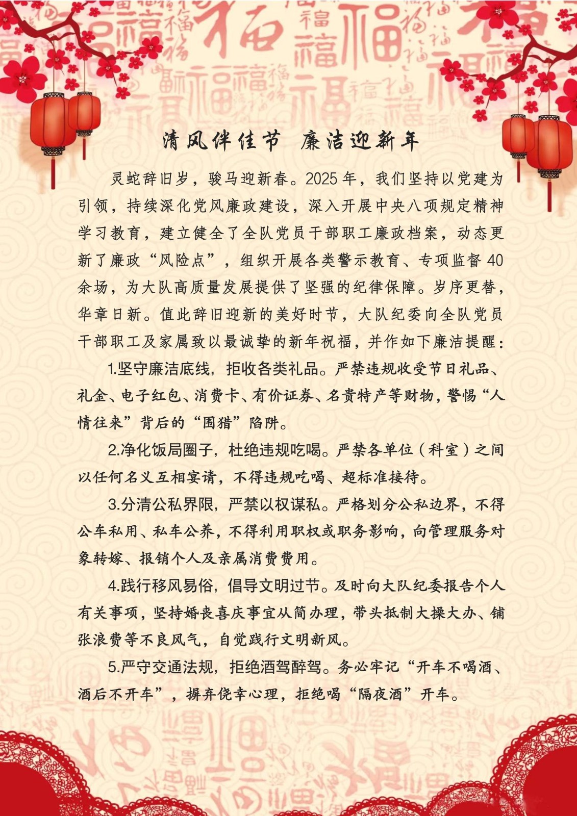 春节廉洁提醒