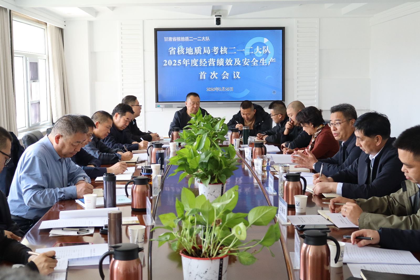 3月25日至27日,省核地质局局长胡勇一行8人莅临我队,对我队2025年度经营绩效及安全生产工作进行了考核。